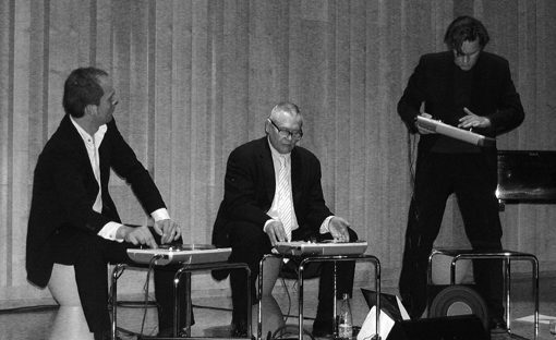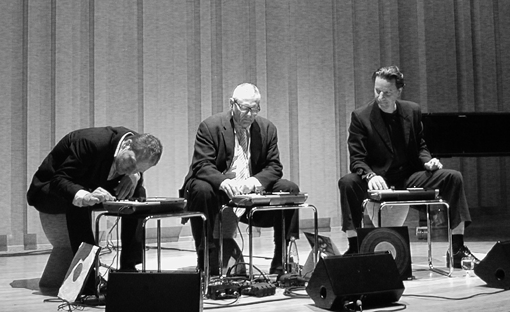 3 men, 3 record players, 3 records